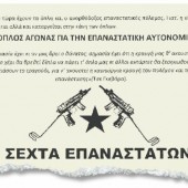 31-07-2010 ΠΡΟΚΗΡΥΞΗ ΣΕΧΤΑΣ ΕΠΑΝΑΣΤΑΤΩΝ ΓΙΑ ΤΗΝ ΕΚΤΕΛΕΣΗ ΤΟΥ Σ.ΓΚΟΛΙΑ by agrorama in Πολιτική Η Σέχτα Επαναστατών οπλίζεται ξανά Στο σημερινό κόσμο το πιο βίαιο πράγμα είναι να μένεις απαθής. Όλη μας η ζωή κατακλύζεται από τη βία. Και όταν δεν είναι η βία των μπάτσων, των κρατητηρίων, των φυλακών, τότε τα πράγματα είναι ακόμα πιο ύπουλα. […]